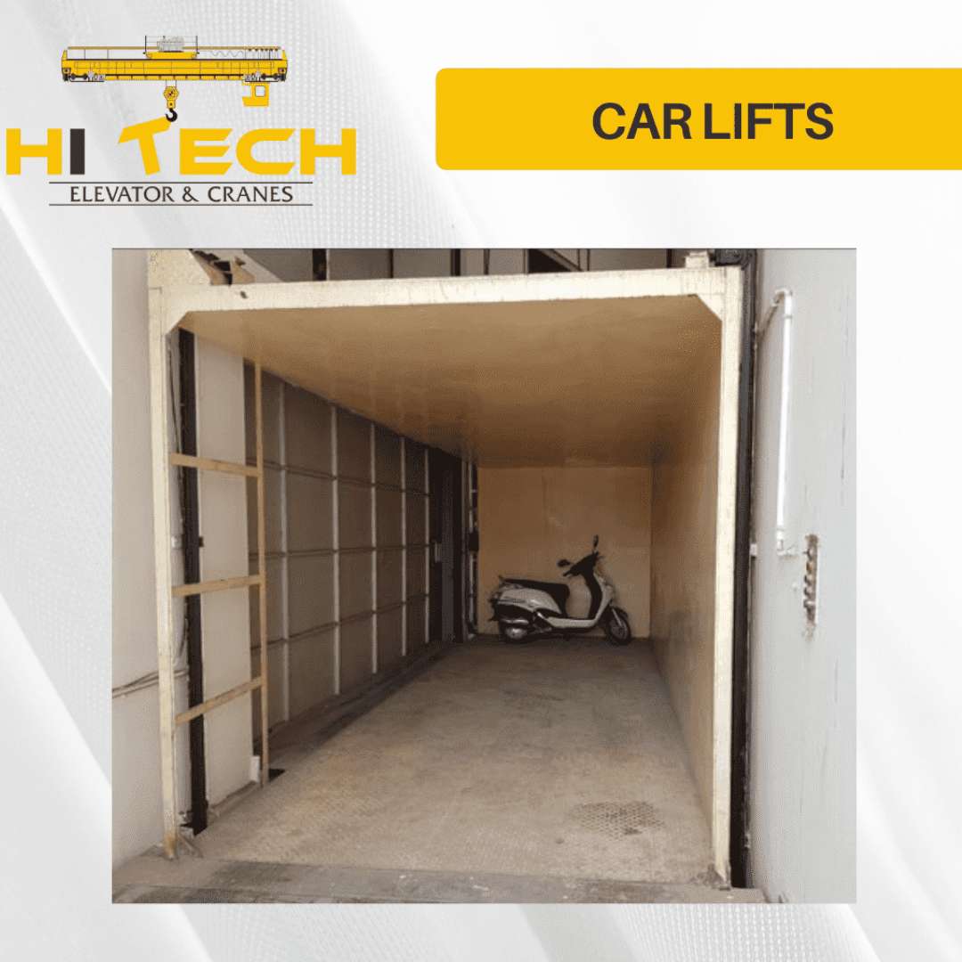 Hi tech is a reliable name when it comes to Car Lift manufacturers and has vast experience in manufacturing car lifts to carry your highly-priced item safely. For commercial places, garages that can easily fit automobiles of different sizes, a Car Lift is a necessity. Our automotive lifts are strong, sturdy and have a high weight carrying capacity. Our safe and secure car lifts are a must-have addition to the sophisticated buildings of all types like car service centres, showrooms, godowns, and factories. The carrying capacity of our Car Lifts ranges from 1500-4000 kgs, as per your requirement.